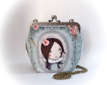 Sac Minaudière fermoir métallique original bandoulière chaine fait main artisanal